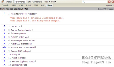 另一个Firefox插件,它可以分析并为你提供提高网页加载速度的建议。这个工具集成了上面说的FireBug工具。